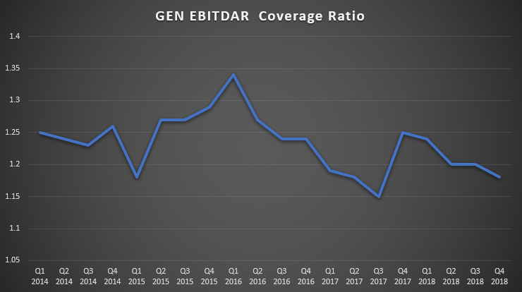 Since then, its AFFO has dropped. The company missed its guidance of $3.42 in 2017, which came in at only $3.30/share. Then, in 2018, AFFO dropped to $3.04. For 2019, guidance is for AFFO of $3.00-3.12; if met, that would make the REIT’s AFFO/share equivalent to its 2015 results.